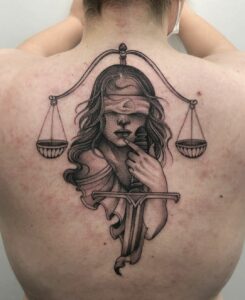 Back – Ideal if you love detailed artwork like goddess figures or mandala-style Libra tattoo ideas.