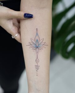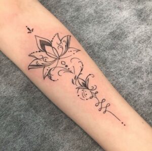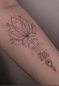 Adding Om, mantras, or spiritual symbols to a lotus tattoo enhances its meaning and personal significance.