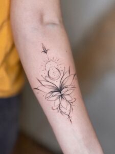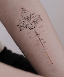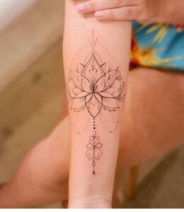 The lotus flower tattoos is unique because it blooms in muddy waters but remains untouched by dirt. This makes it a powerful symbol of purity, growth, and resilience.