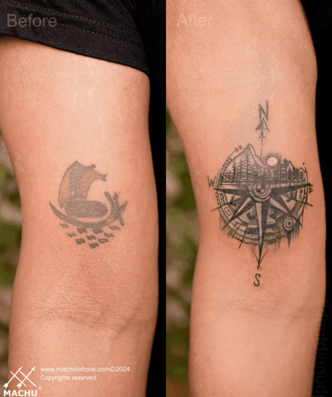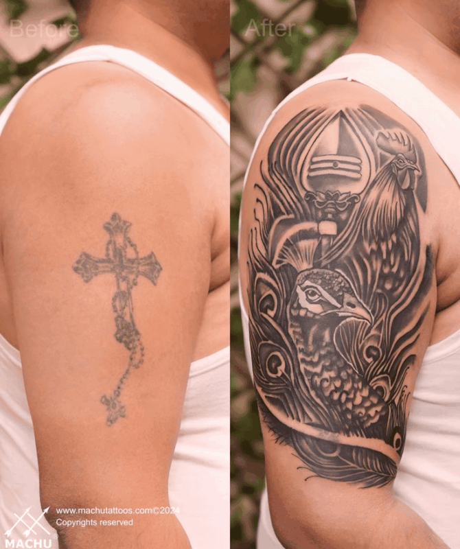 Cover-ups done by the Top 10 Best Cover-up Tattoo Artist in Vizag / Visakhapatnam feel similar to regular tattoos. Machu Tattoo Studio, the best in the Top 10 Best Cover-up Tattoo Artist in Vizag / Visakhapatnam, ensures comfort. Suresh Machu is known for making clients relaxed during the process at the Top 10 Best Cover-up Tattoo Artist in Vizag / Visakhapatnam.